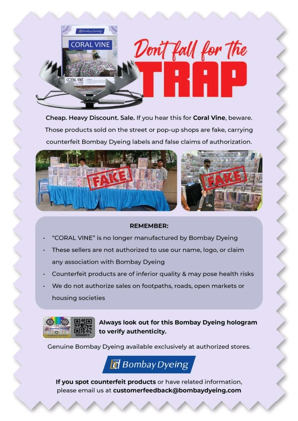 Bombay Dyeing Cotton Coral Vine Plus King Size Double Bedsheet with 2 Pillow Cover Set Is Fake Product Don't Buy Duplicate Product