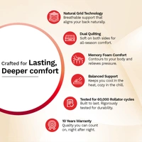 - Natural Coir Grid: Made from natural coconut husk fibre, it enhances airflow, prevents sagging, and supports spinal alignment.